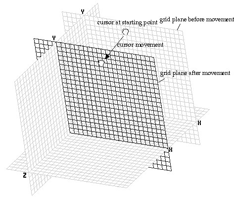 | 3) Place the screen cursor over the grid plane to move. The